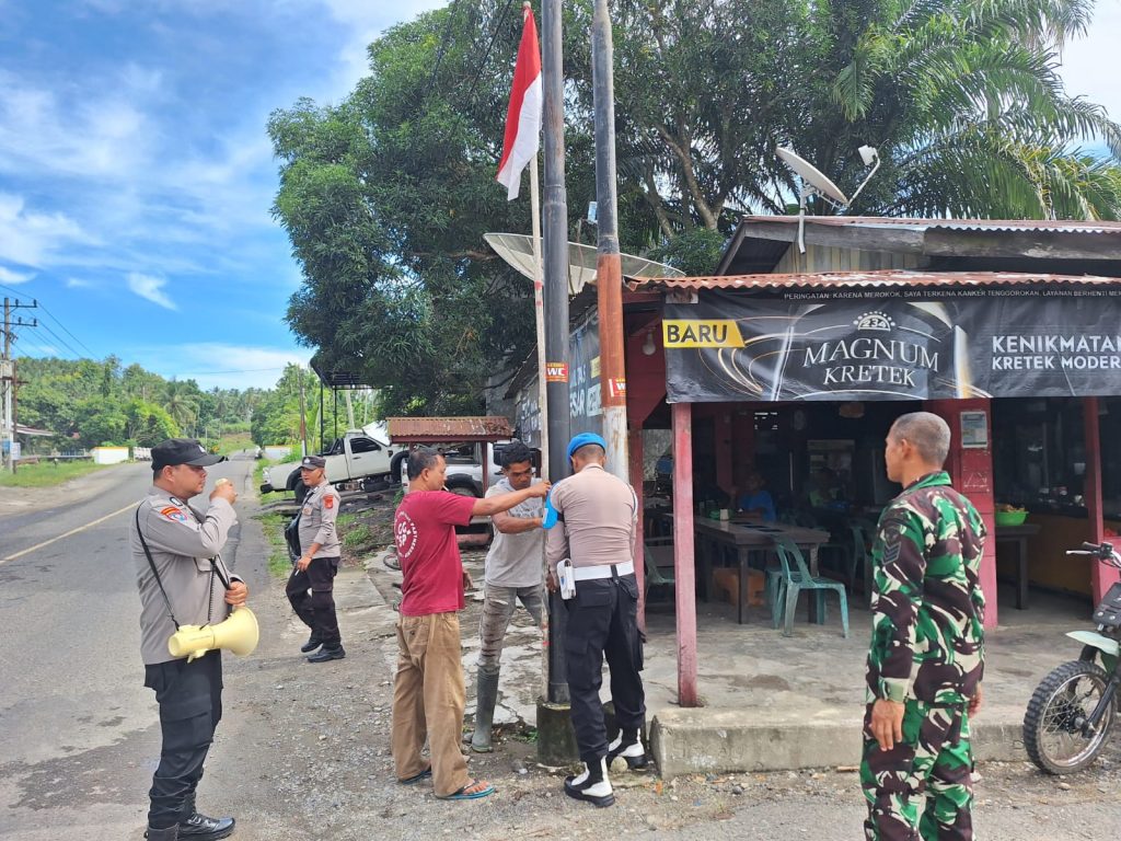 BIREUEN – Menjelang perayaan Hari Kemerdekaan Republik Indonesia yang ke-79 pada 17 Agustus 2024, personil Polsek Juli bersama dengan personil Koramil 05/Juli melaksanakan kegiatan himbauan kepada masyarakat di Kecamatan Juli, Kabupaten Bireuen. Himbauan ini bertujuan agar warga mengibarkan Bendera Merah Putih atau Umbul-Umbul di depan rumah, ruko, atau tempat usaha lainnya, Rabu (7/8/2024).